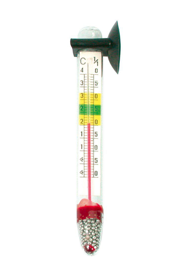 Flytende termometer i glass med sugekopp.