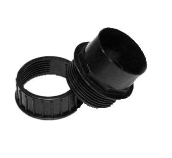 Tank gjennomføring med 110mm innvendig diameter ene enden. Skrus i tanken og tettes med gummipakningen.