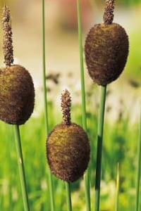 Minivariant av dunkjevle, passer som siv i små hagedammer. Får runde frøkapsler. Voksedybde 5-30cm. Høyde 50-80cm.